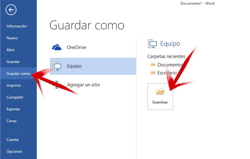 Desde la suite de office con la opción Guardar como