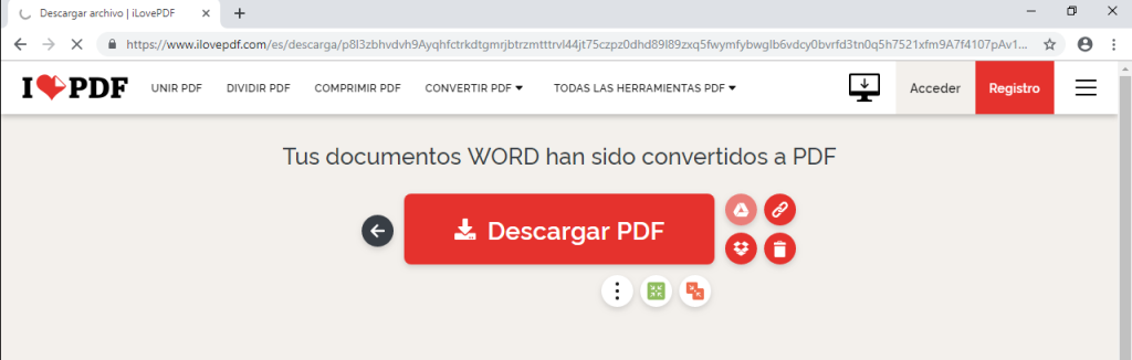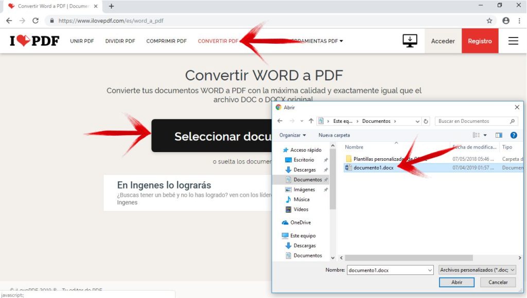 Convertir un documento a pdf con ilovepdf