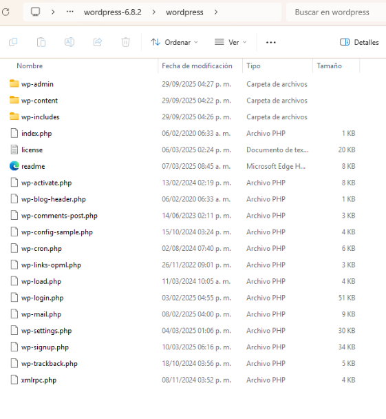 Descomprime el archivo: Localiza el archivo .zip de WordPress que descargaste y descomprímelo en una carpeta de tu computadora. Verás una carpeta llamada wordpress con todos los archivos de instalación dentro.