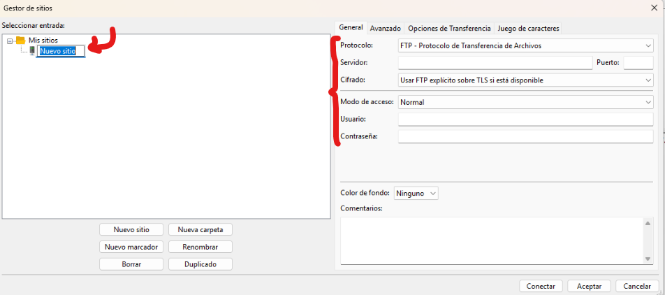 ftp.tudominio.como una IP). - Nombre de usuario: El nombre de usuario de tu cuenta FTP.