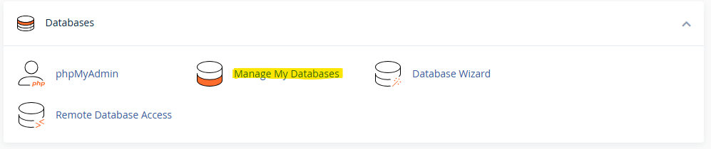 Entra a tu panel de control de hosting y busca el icono de para crear una nueva base de datos o para administrar tus bases de datos, por ejemplo en cpanel