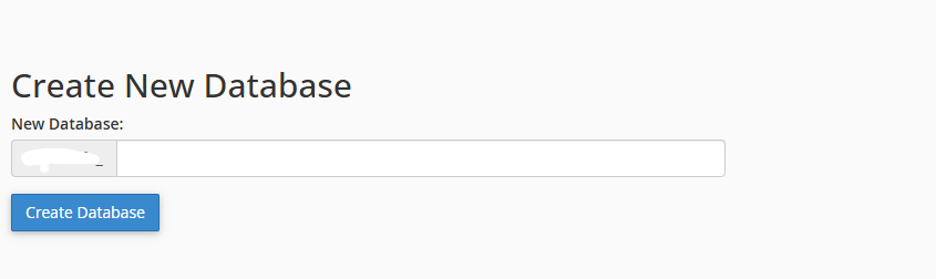 Asigna un nombre a tu base de datos y da clic a crear, en este punto algunos proveedores agregaran parte de tu dominio como prefijo, algunos otros generan el nombre de forma automática. Anota este nombre completo, ya que lo necesitarás más tarde.