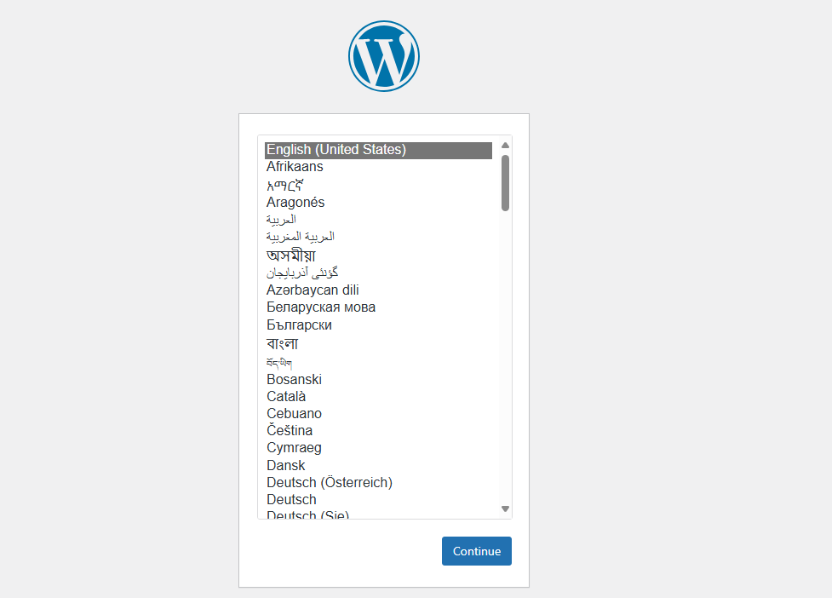 Abre el navegador de tu preferencia y entra a tu sitio (https://tudominio.com) como ya estan los archivos cargados, te va a dirigir al proceso de instalación, por lo que verás una ventana como la siguiente, donde comenzaremos por elegir el idioma y daremos clic a continuar.