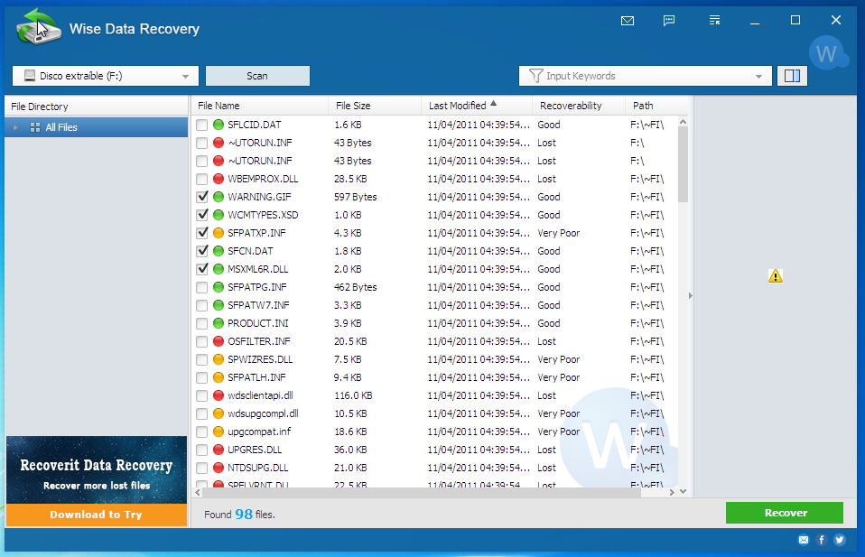 Como recuperar archivos borrados WISE DATA