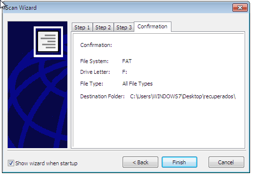 Para finalizar selecciona la carpeta a la cual se moverán los archivos recuperados