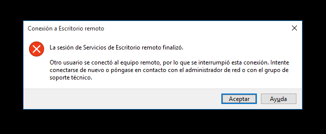 En caso de iniciar sesión en el equipo al cual se esta accediendo de forma remota con el usuario que se utiliza para el control remoto, esta acción finalizará la sesión de control
