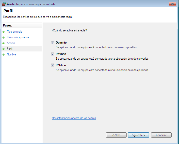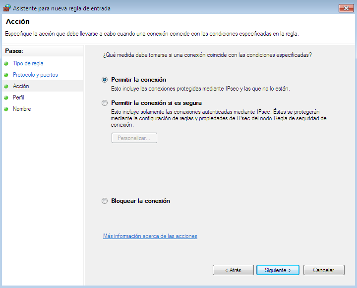Este paso consiste básicamente en permitir la conexión a través el puerto configurado en el router.