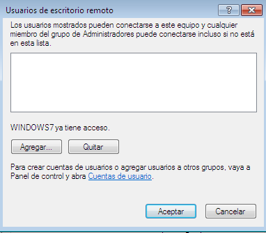 Puedes agregar o quitar usuarios. Estos tendrán acceso a nuestra máquina a través del escritorio remoto.