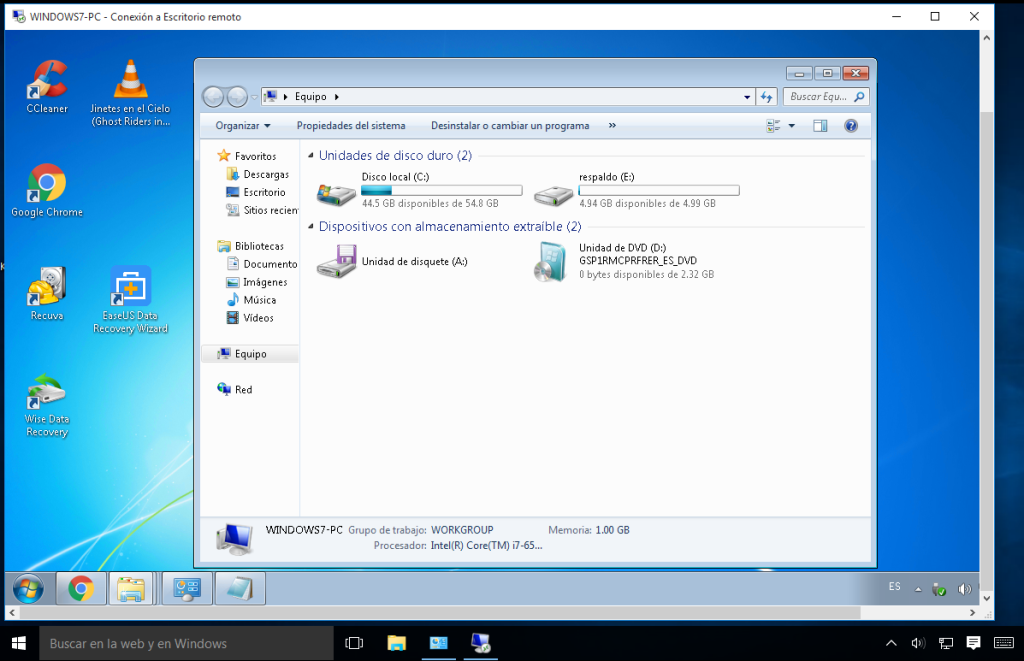 Haremos una prueba donde controlaremos un equipo con windows 7 professional desde un equipo con windows 10 pro en una red local, ambos equipos se encuentran en el mismo grupo de trabajo.