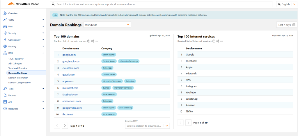 Cloudflare Radar Domain Rankings es una herramienta que ofrece una visión global del tráfico en internet. A diferencia de otras plataformas que se centran en un solo sitio, esta herramienta analiza tendencias a nivel mundial.