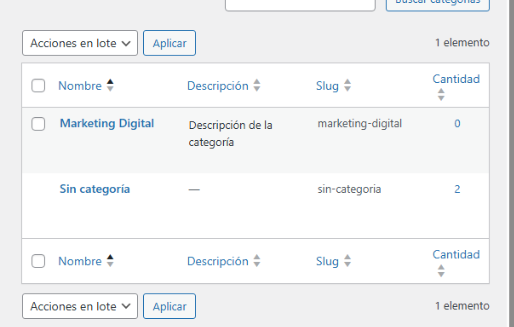 Verás una pantalla con todas las categorías existentes. En la parte izquierda, encontrarás un formulario para añadir una nueva categoría.