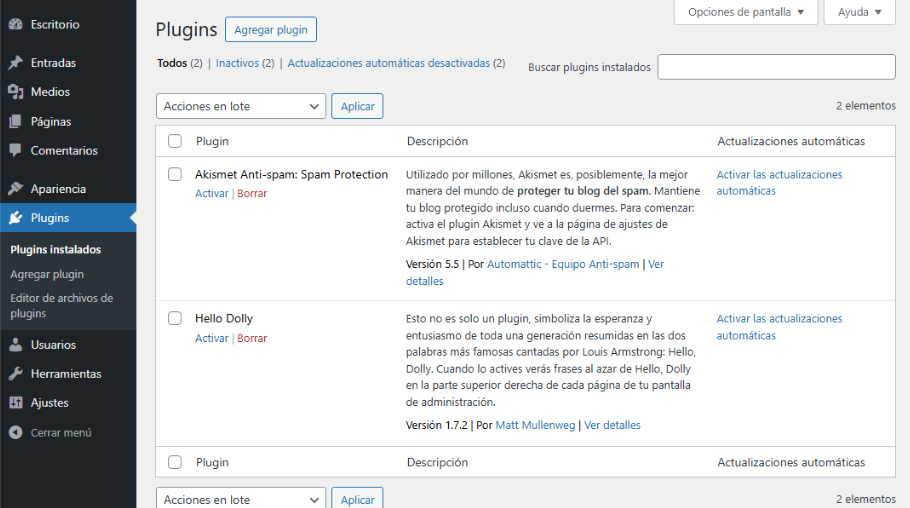 Para mantener tu sitio rápido y seguro, te sugiero instalar solo los plugins que son absolutamente necesarios. Desactiva y elimina cualquier plugin que no estés utilizando. La regla de oro es: si un plugin no te aporta un beneficio claro, no lo instales.