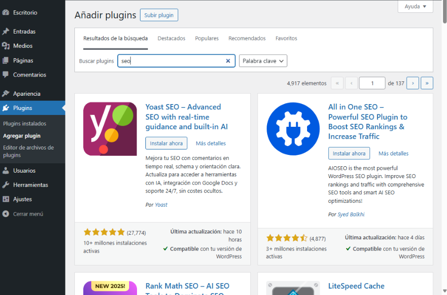 Verifica la compatibilidad: Asegúrate de que el plugin sea compatible con tu versión actual de WordPress y con el tema que tienes instalado. Esta información suele estar disponible en la página de descripción del plugin.