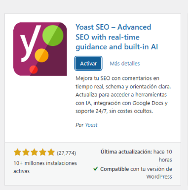 Una vez instalado, haz clic en "Activar" para que el plugin empiece a funcionar en tu sitio.