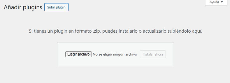En la misma sección de Plugins > Añadir nuevo, haz clic en el botón "Subir plugin" en la parte superior de la pantalla.