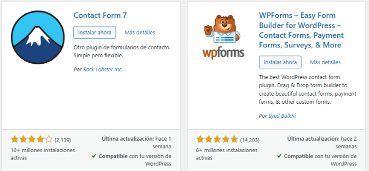 Necesitas una forma de que tus visitantes se comuniquen contigo. Contact Form 7 y WPForms son plugins sencillos y muy eficaces para crear formularios de contacto.