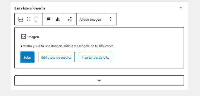 Ahora verás un editor visual para las diferentes áreas de widgets de tu tema, como la barra lateral o el pie de página. Para añadir un nuevo widget, simplemente haz clic en el ícono (+) o en cualquier bloque vacío. Esto abrirá un menú de búsqueda donde podrás encontrar el widget que necesitas.